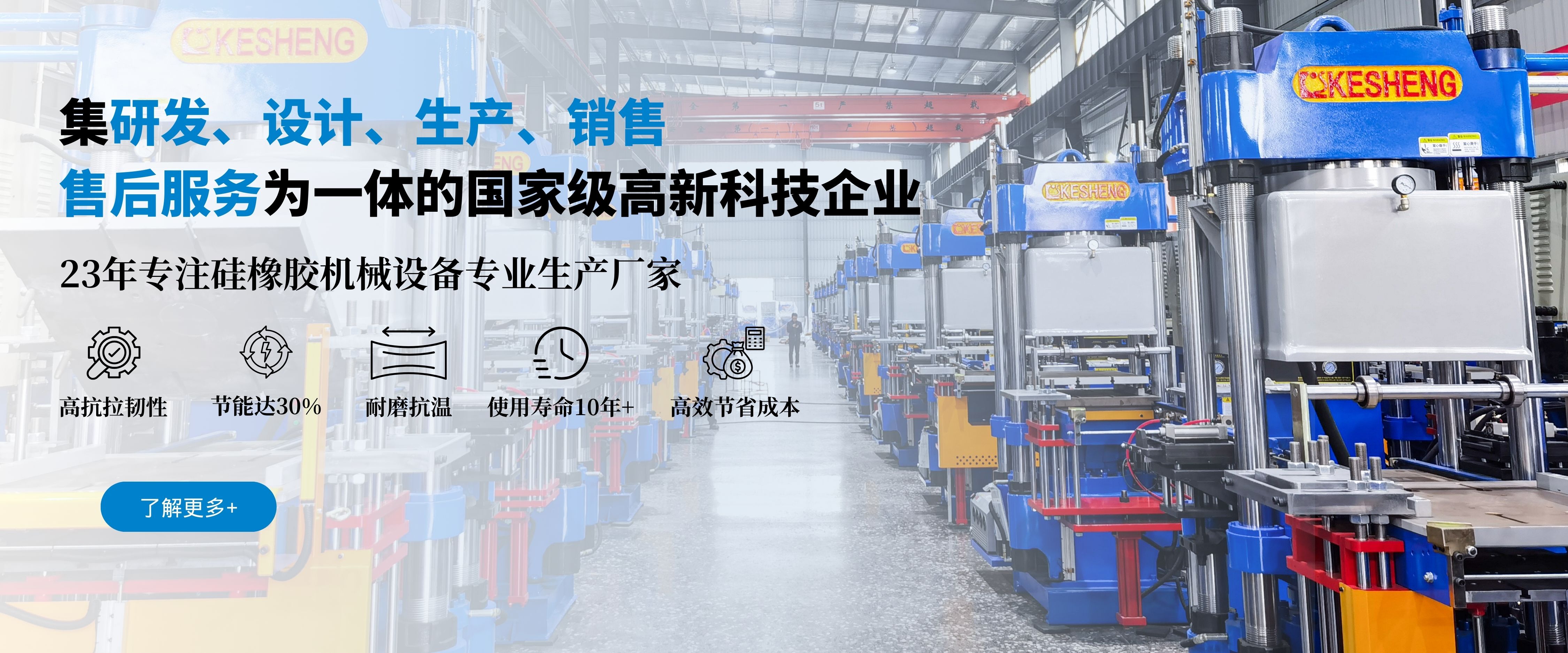 了解更多 →科盛長期以來致力于油壓機設備的研究與創新,近年來每年投入的科技研發費用占公司總收入的10%以上,技術人員約占公司人數40%,公司主管經理都是橡硅膠油壓機械行業數十年的技術及管理精英,科盛匯聚了行業之精英人員,雄厚的資金技術研發實力,為您的設備保駕護航。